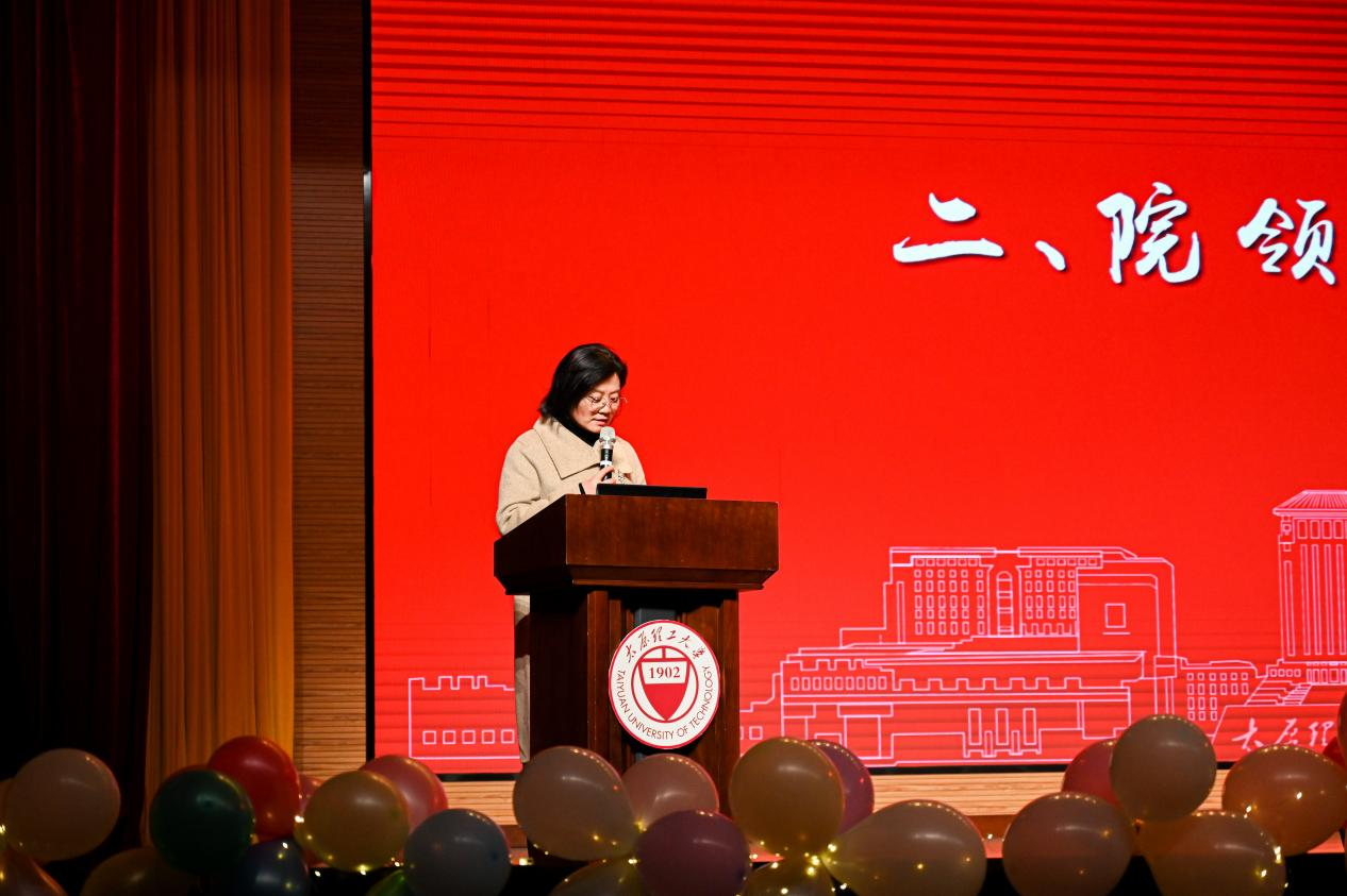 晚会首章“学韵筑梦·展新颜”,在激情奏响的《公路之歌》乐队表演中活力开篇。激昂旋律余音绕梁之际,院党委书记朱晋华登台致辞,她代表院党委,向在过去一年里辛勤耕耘的教师们,努力拼搏的同学们,表示崇高的敬意和衷心的感谢。她表示,回顾2023—2024学年,全体师生在学校党政坚强领导下,同心同德、砥砺奋进,更加注重教学质量和科研水平的提升,深化学科交叉与融合,推动产学研一体化发展。展望未来,她提出三点希望:一是要切实学出示范表率的思想自觉。二是要切实学出遵规守纪的纪律自觉。三是要切实学出求知争先的行动自觉。