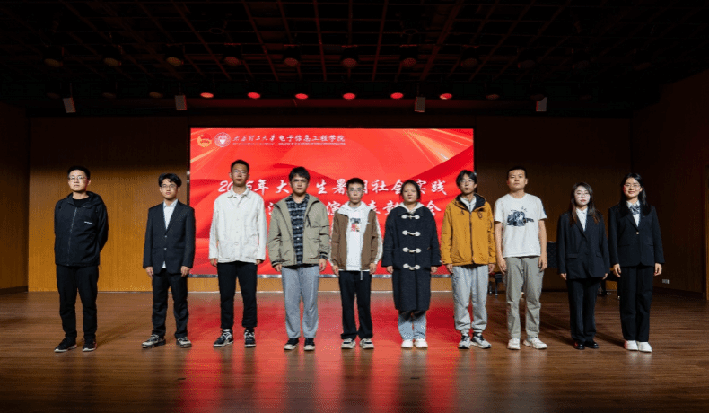 推普短剧结束后,赴象山访企团队成员代表上台分享实践感悟。团队此前在宁波象山开展5天企业走访,成员围绕车间技术观察、政校企座谈交流等经历,分享对电子信息行业前沿动态的认知,以及实践对个人职业规划的启发,为在场同学提供了宝贵的行业参考。