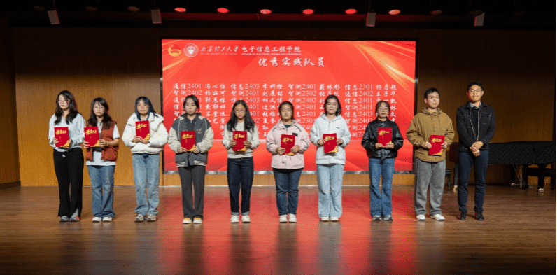 随后进入隆重的颁奖环节,学院领导依次为“优秀实践团队”代表、“优秀实践队员”代表颁发荣誉证书并合影留念。手中的证书不仅是对实践成果的认可,更是对未来继续践行“知行合一”的激励。