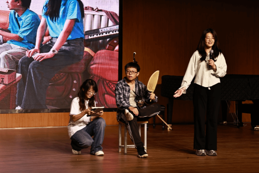 作为2025年“推普助力乡村振兴”全国大学生暑期社会实践参与协调团队,“电波传语,声动吕梁”推普实践队率先带来短剧表演。团队以吕梁乡村推普实践为背景,通过生活化场景再现,展现教老人学拼音、用“方言+普通话”讲解政策等暖心片段,既传递语言文字的魅力,也彰显学子助力乡村文化振兴的热情,赢得全场掌声。