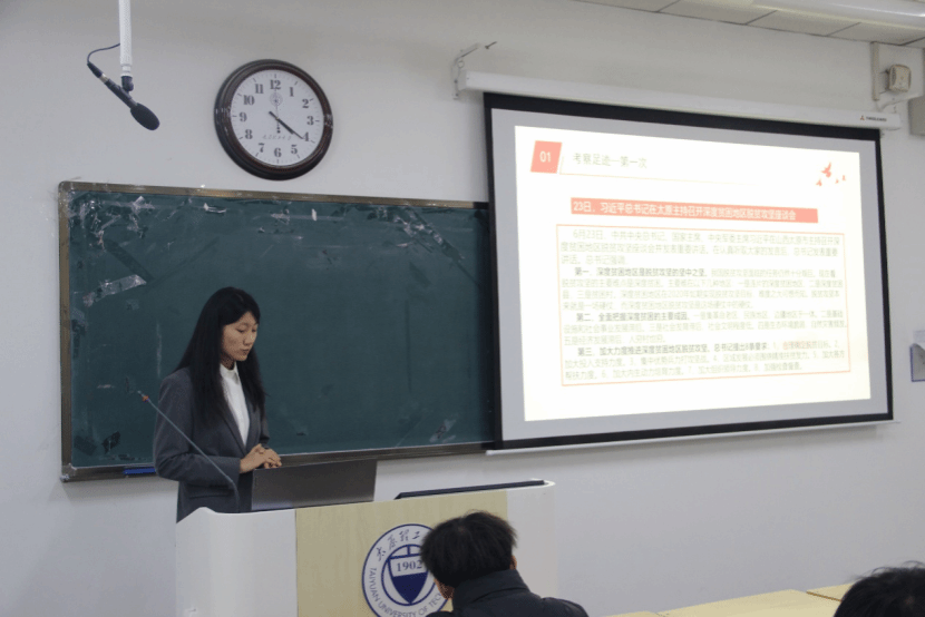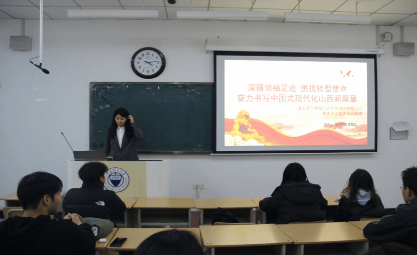 党的十八大以来,习近平总书记先后五次亲临山西考察调研,为三晋大地高质量发展指航定向、擘画蓝图。特别是2025年7月7日至8日,习近平总书记亲临阳泉、太原等地考察,在全民族抗战爆发88周年纪念日当天赴阳泉狮脑山百团大战纪念碑广场敬献花篮、参观纪念馆,为山西发展注入强大动力。为深入学习贯彻习近平总书记考察山西重要讲话重要指示精神,2025年11月23日于行远楼B224,高君宇班开展专题宣讲活动,由高君宇班同学苏筱瑜主讲。
