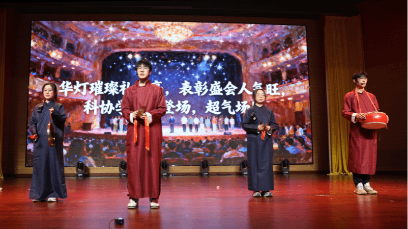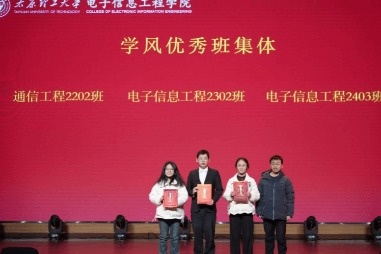 “学星璀璨·续荣光”篇章惊艳登场,现场瞬间被青春的热烈氛围包裹。范译文等同学以复古舞姿演绎舞蹈《90年代》,以复古又鲜活的舞步唤醒时代记忆,每一个节拍都洋溢着独属于青春的鲜活与朝气;科协的同学们将信息人的科创精神总结为朗朗上口的三句半《学风正当时》,诙谐生动的表演,引得全场掌声连连。随后,由张博为“学风优秀班集体”颁奖,3个优秀班集体脱颖而出,成为示范楷模。