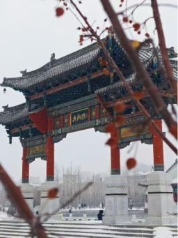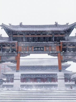 雪落时,大同坊的朱红柱廊先接住了碎玉 —— 飞檐翘角裹着银霜,鎏金匾额浸在冷雾里,连斗拱彩绘都蒙了层软白。枝桠悬着的残果点暖了冬的素净,雪絮斜斜漏过雕纹,像给古意写了行轻软的注脚;瓦当兽首驮着新雪,时光便在这里慢成一帧工笔。